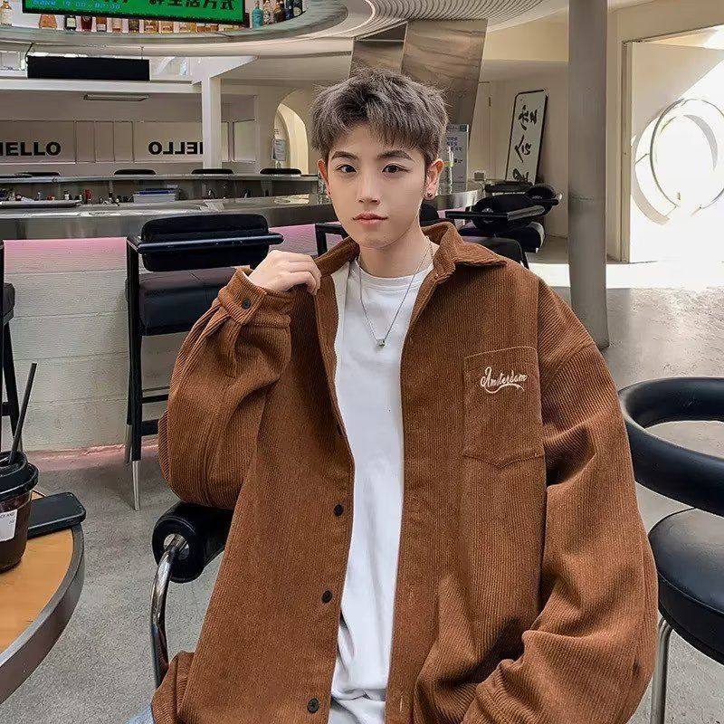 美式灯芯绒衬衫外套男春秋季潮牌夹克宽松复古韩版潮流情侣款褂子