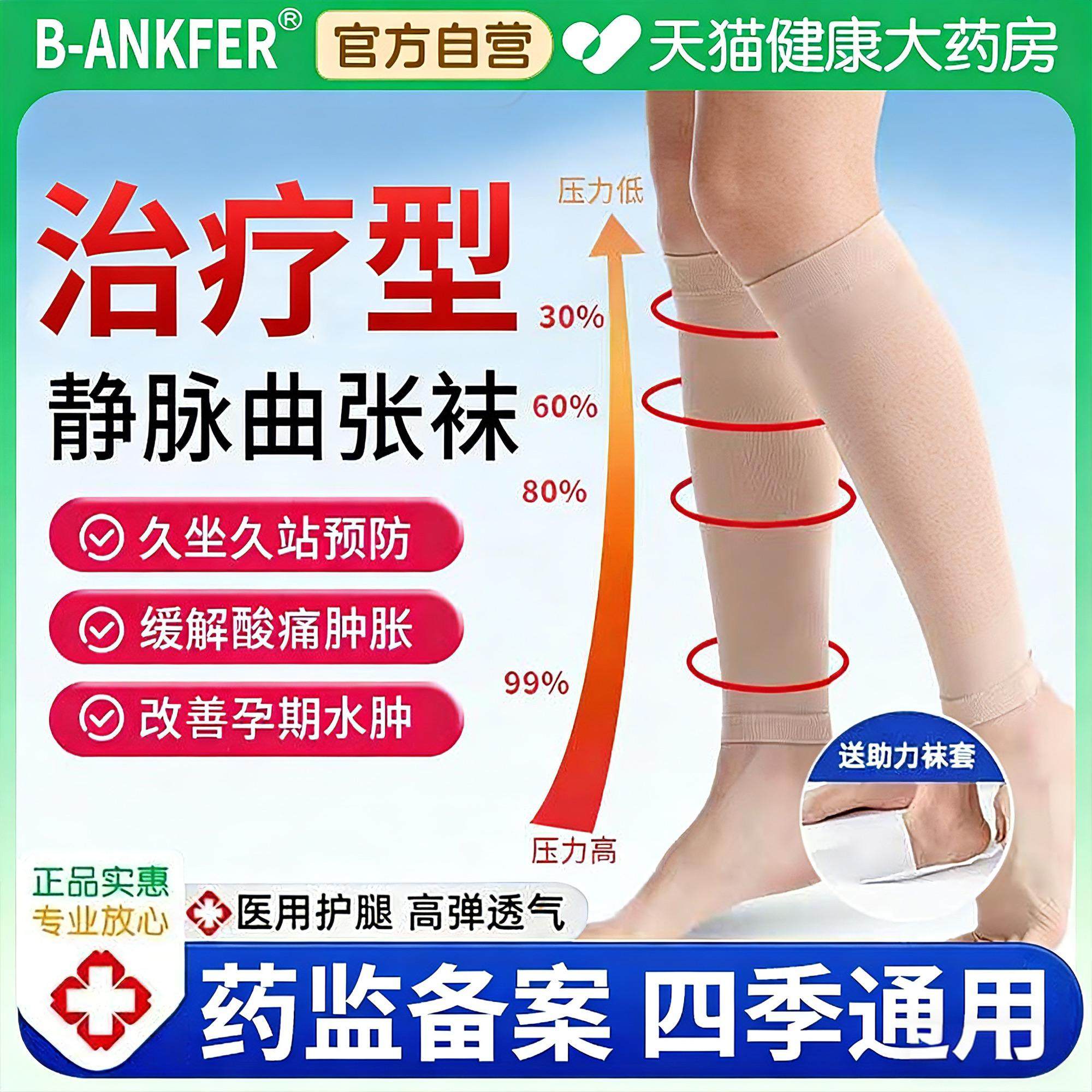 安其生医用静脉曲张弹力袜女男治疗型压力祙小腿医护预防夏季薄款
