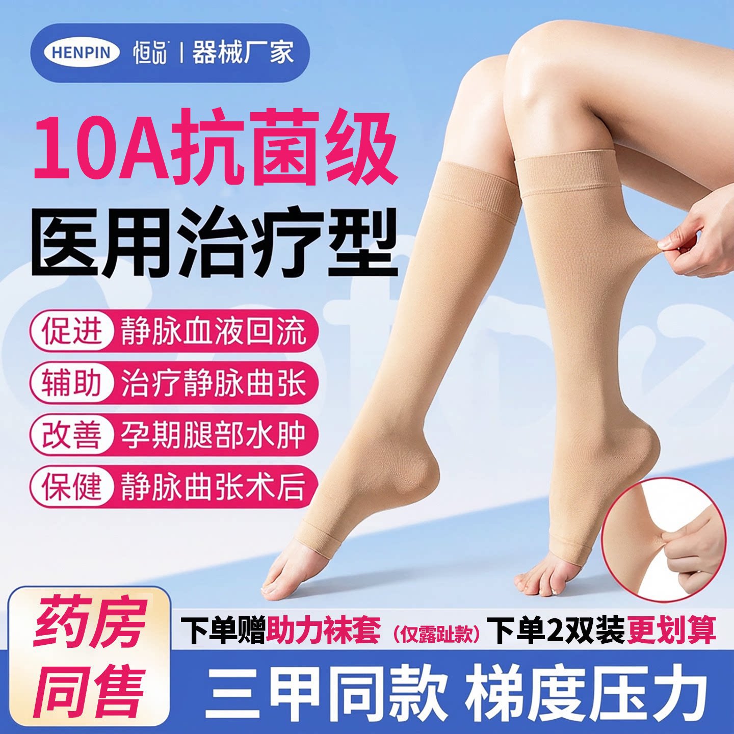 恒品夏季薄款医用静脉曲张弹力袜医护压力袜男女预防下肢扩张孕妇