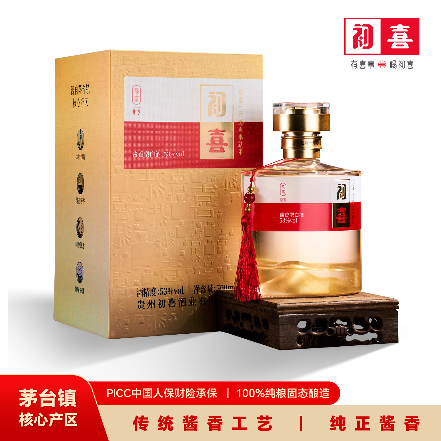 初喜【添喜】纯粮酿造酱香53度白酒婚礼结婚满月喜宴席喜酒500ml