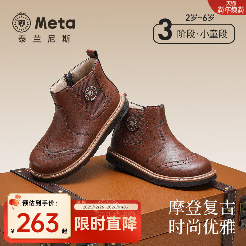 泰兰尼斯meta儿童皮靴春秋新款切尔西靴女童时尚复古短靴男童靴子