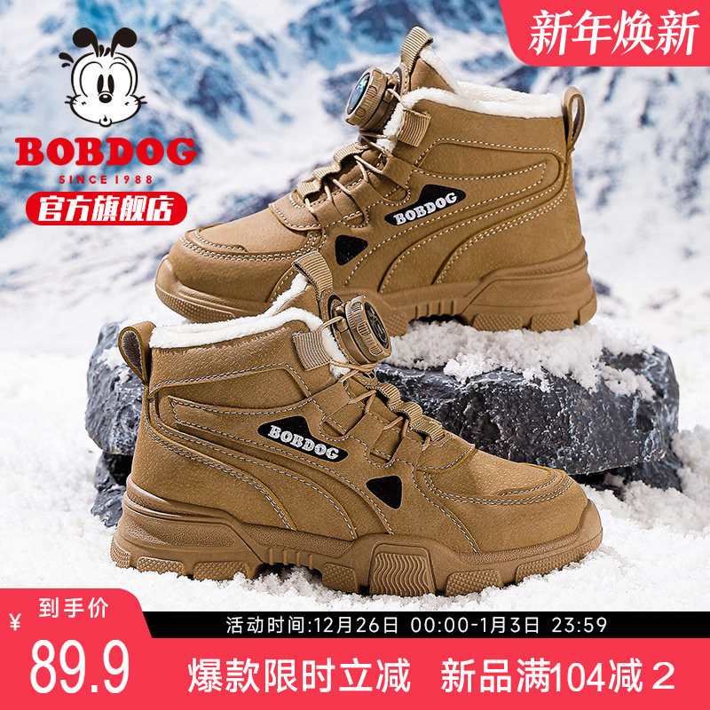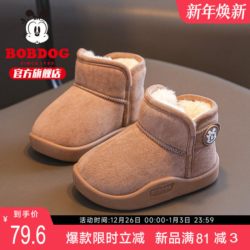 巴布豆童鞋官方旗舰店儿童雪地靴加绒大棉鞋短靴冬季男宝男童靴子