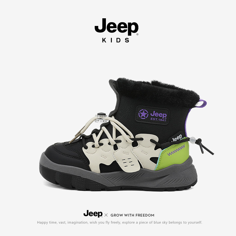 jeep儿童雪地靴加绒加厚2025新款冬季防水防滑男童靴子女童大棉鞋