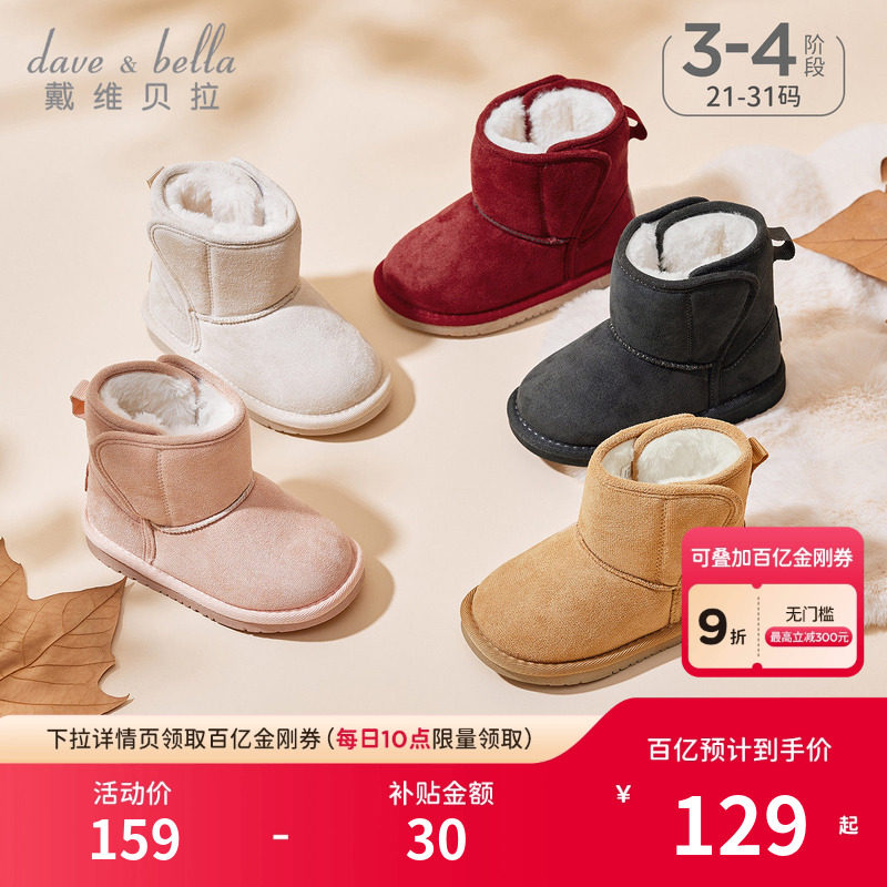 巴拉巴拉童鞋儿童雪地靴男童女童短靴加厚加绒冬季靴子简约防滑潮