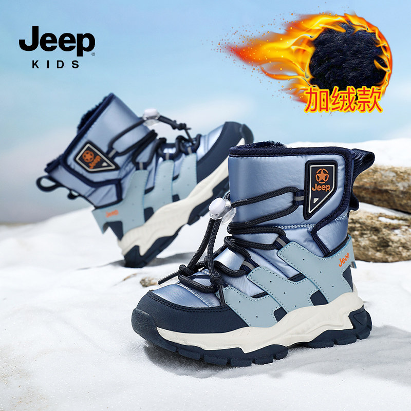 JEEP儿童雪地靴加绒加厚2025新款冬季防水防滑男童靴子女童大棉鞋