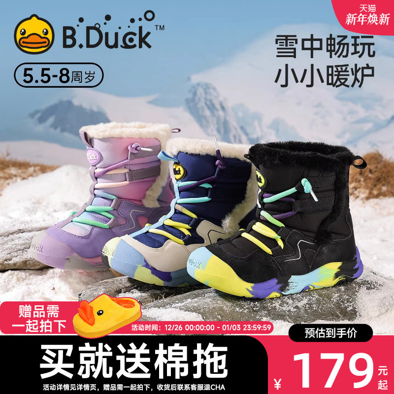 小黄鸭童鞋儿童雪地靴男童靴子新款冬季女童棉靴加厚棉鞋保暖防滑