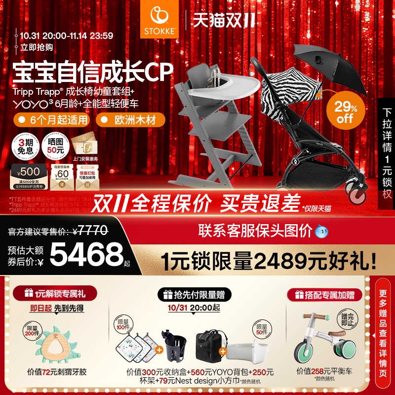 【双11开抢】Stokke婴儿轻便推车可登机+宝宝成长婴童餐椅套组