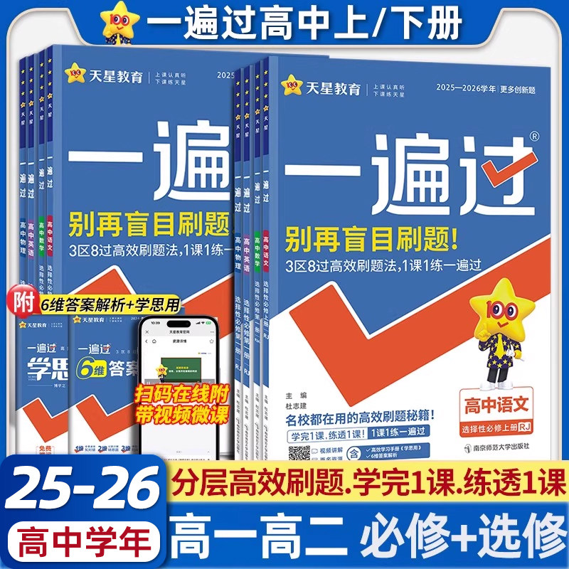 天星教育2026高中一遍过数学必修一高二物理必修三化学生物选择性必修四英语文上册下政治历史地理新高考教材必刷同步练习题册资料
