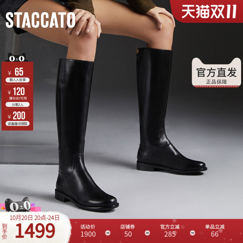 孙千沈月同款百丽双子星骑士高长靴女冬季加绒显瘦长筒靴子预E4F1