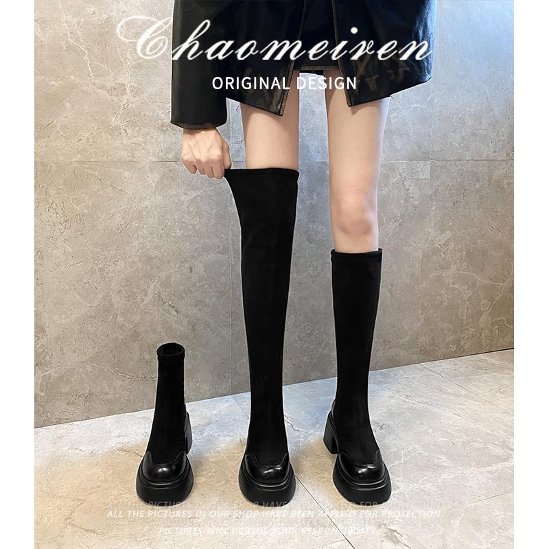 过膝靴厚底弹力靴高筒靴2025秋冬款瘦瘦靴粗跟增高长筒靴女长靴子