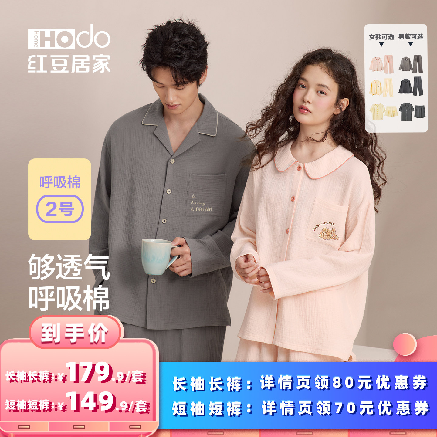 【所有女生的衣橱直播间】红豆居家情侣纯棉双层纱布睡衣套装春夏