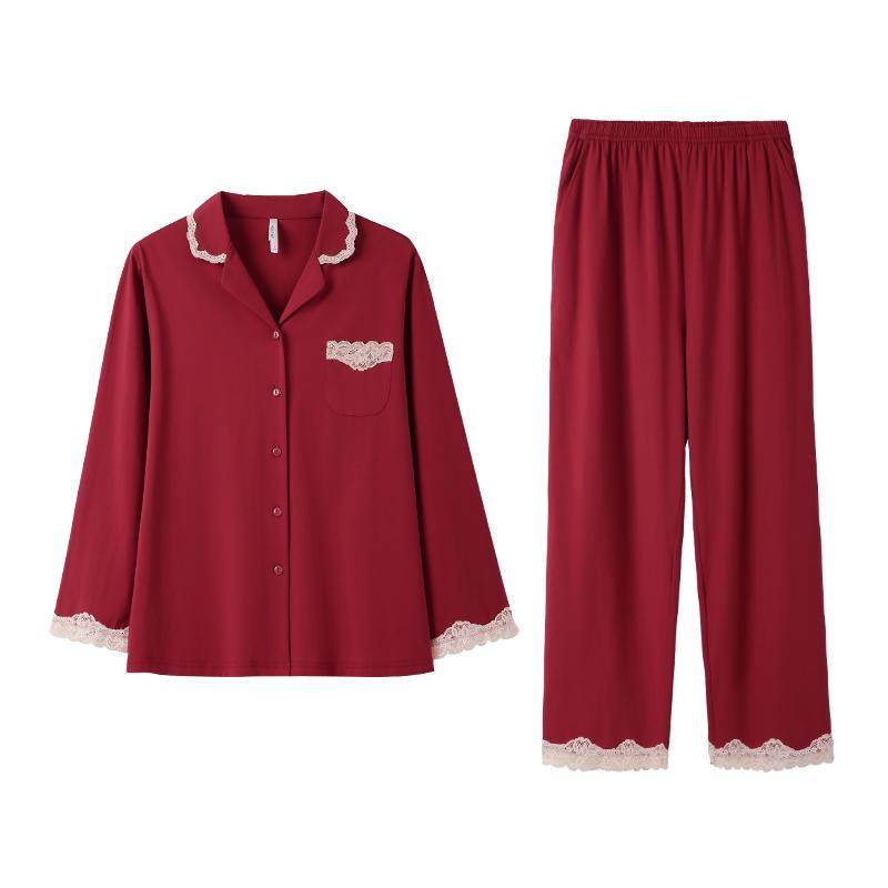 都市丽人纯棉睡衣结婚新婚情侣套装25新款春秋男女长袖红色家居服