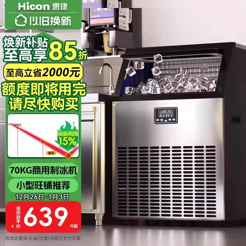 Hicon惠康制冰机大型商用奶茶店80KG-150KG全自动方冰块制作机器