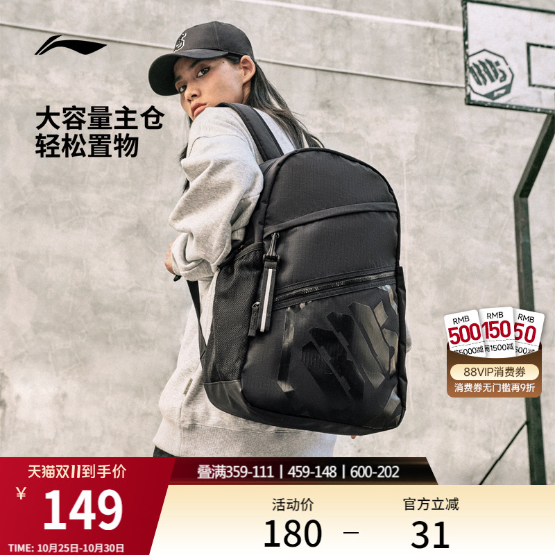 李宁双肩包男女士同款官方设计感大容量学生书包旅行出游运动背包