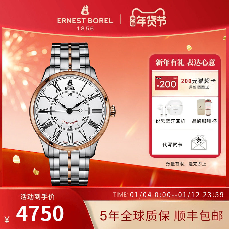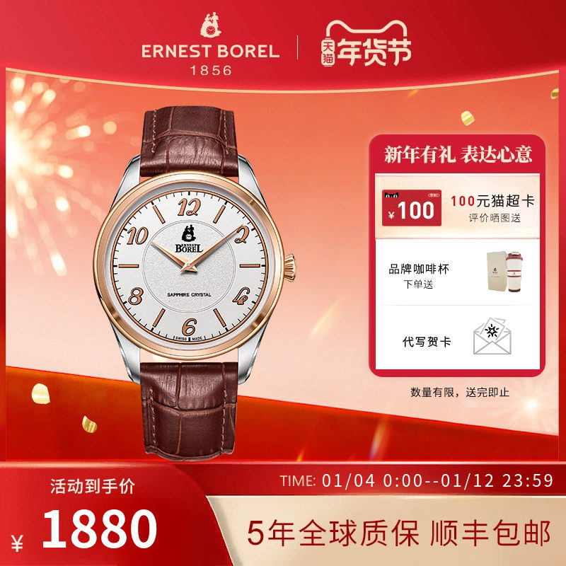 依波路瑞士手表男款石英表 ERNESTBOREL男士手表真皮复古系列