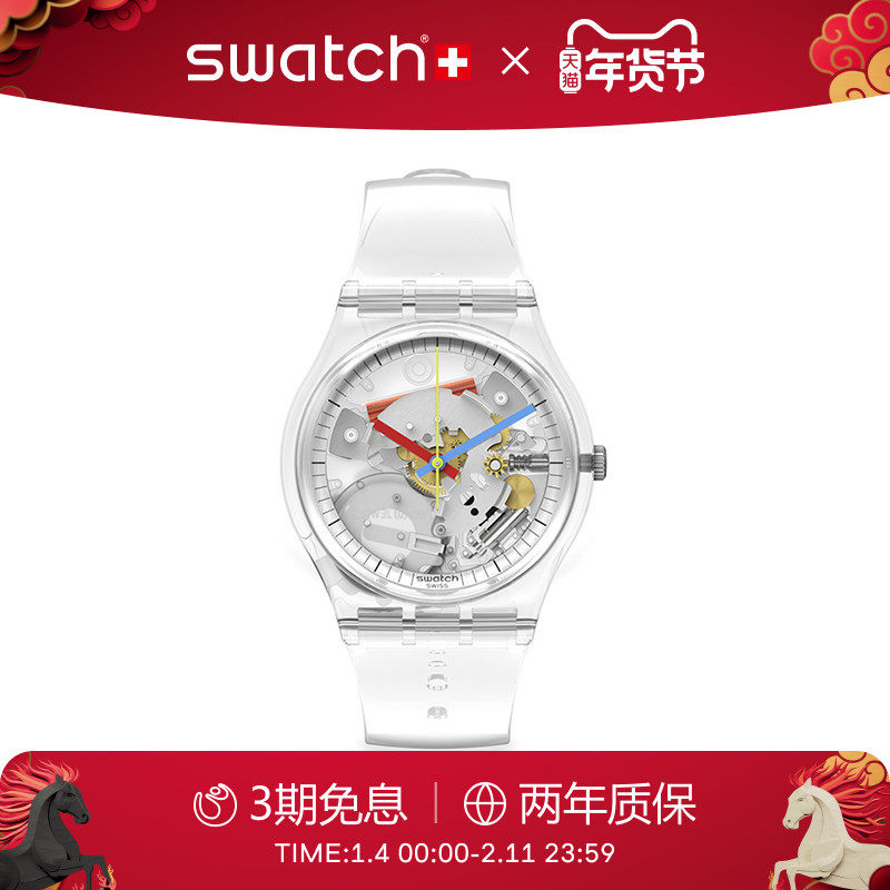 Swatch斯沃琪瑞士手表男女表透明简约学生石英腕表新年穿搭礼物