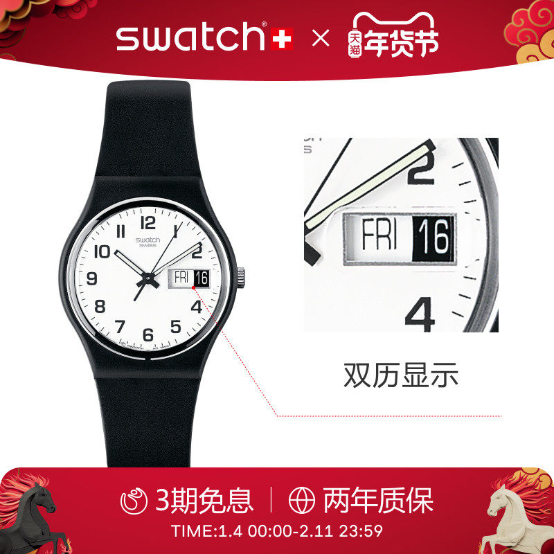 Swatch斯沃琪瑞士手表男女简约黑色初高中学生石英表考试新年礼物