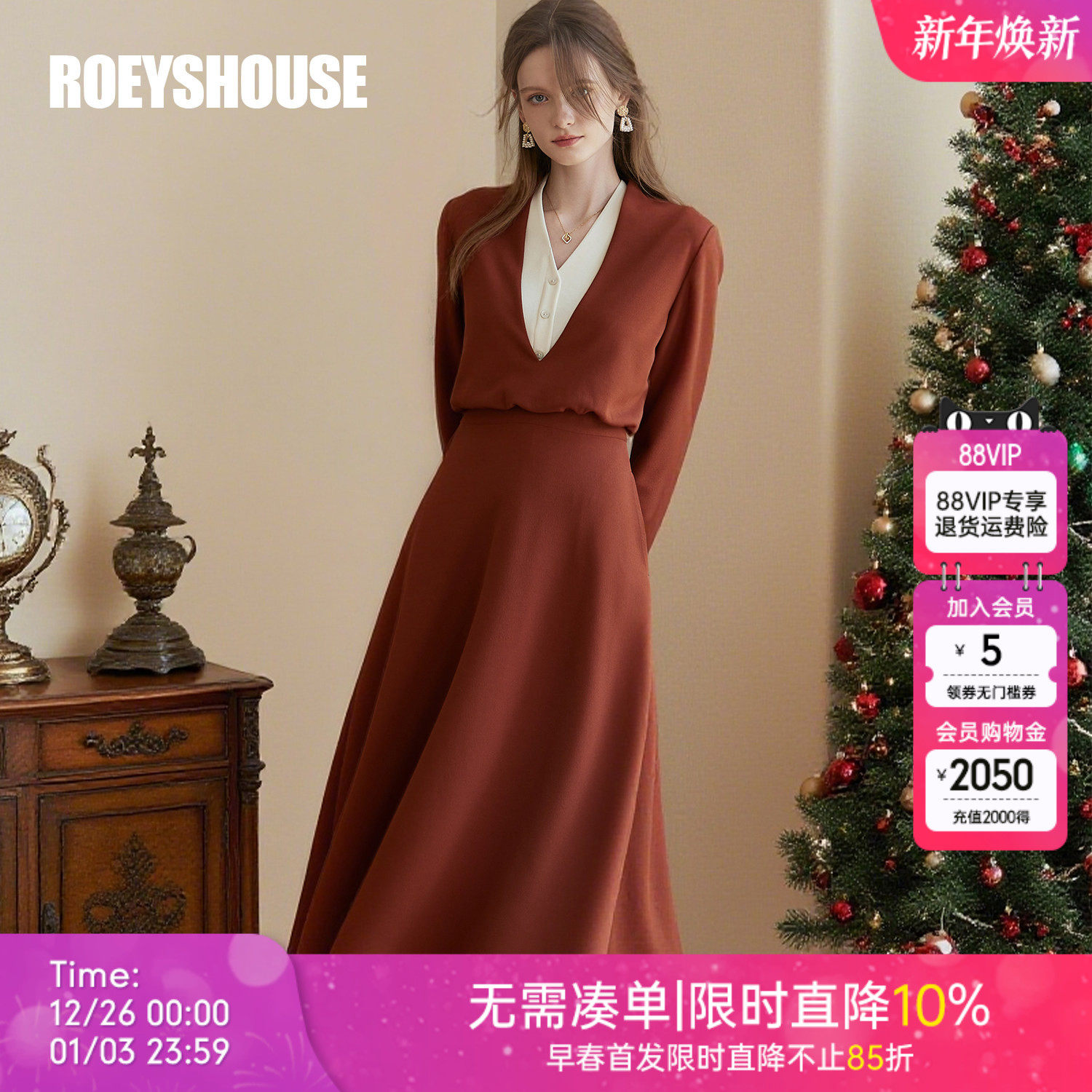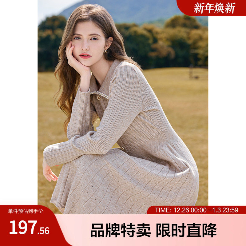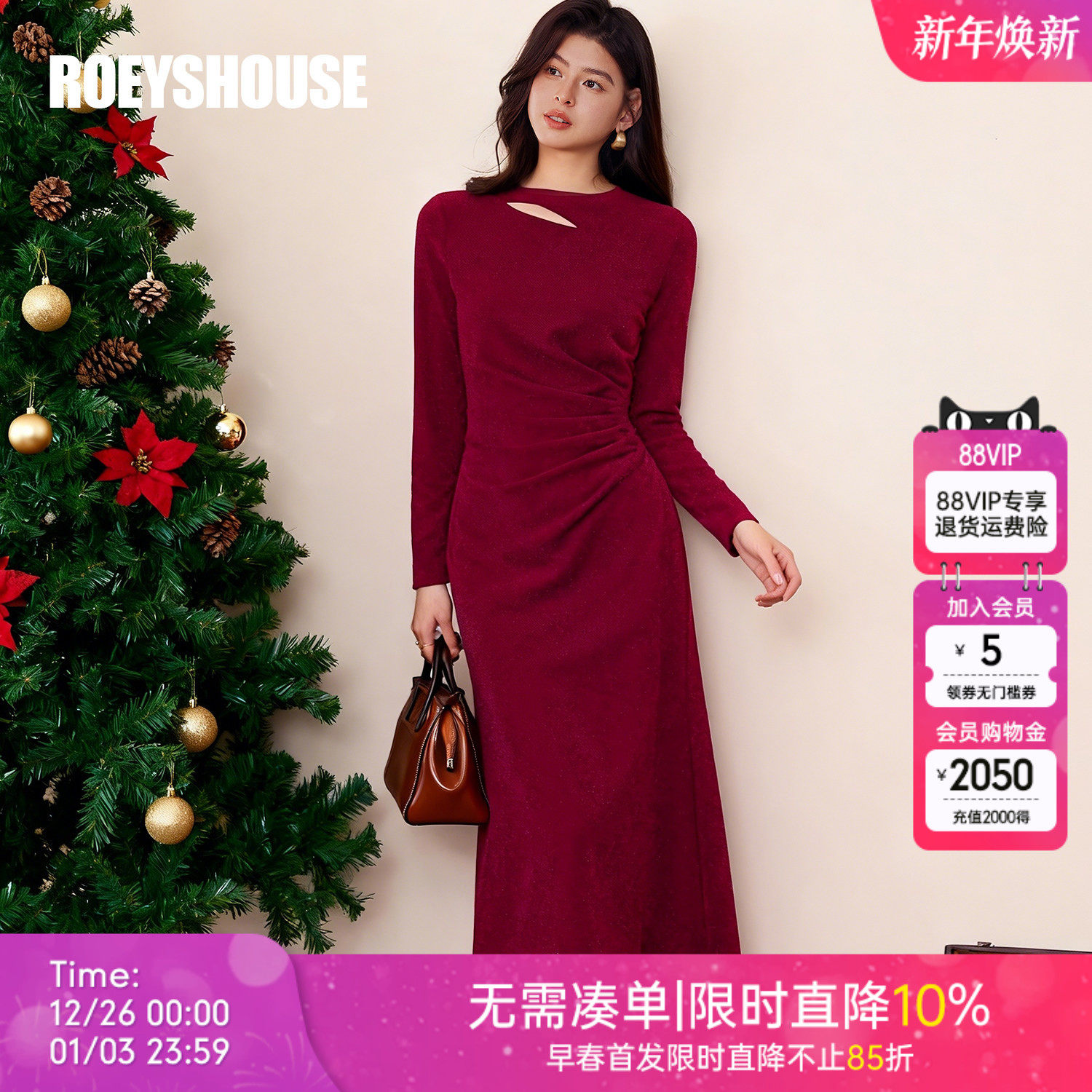 圣诞专供款|罗衣美拉德修身收腰针织打底连衣裙女冬中长裙子09704