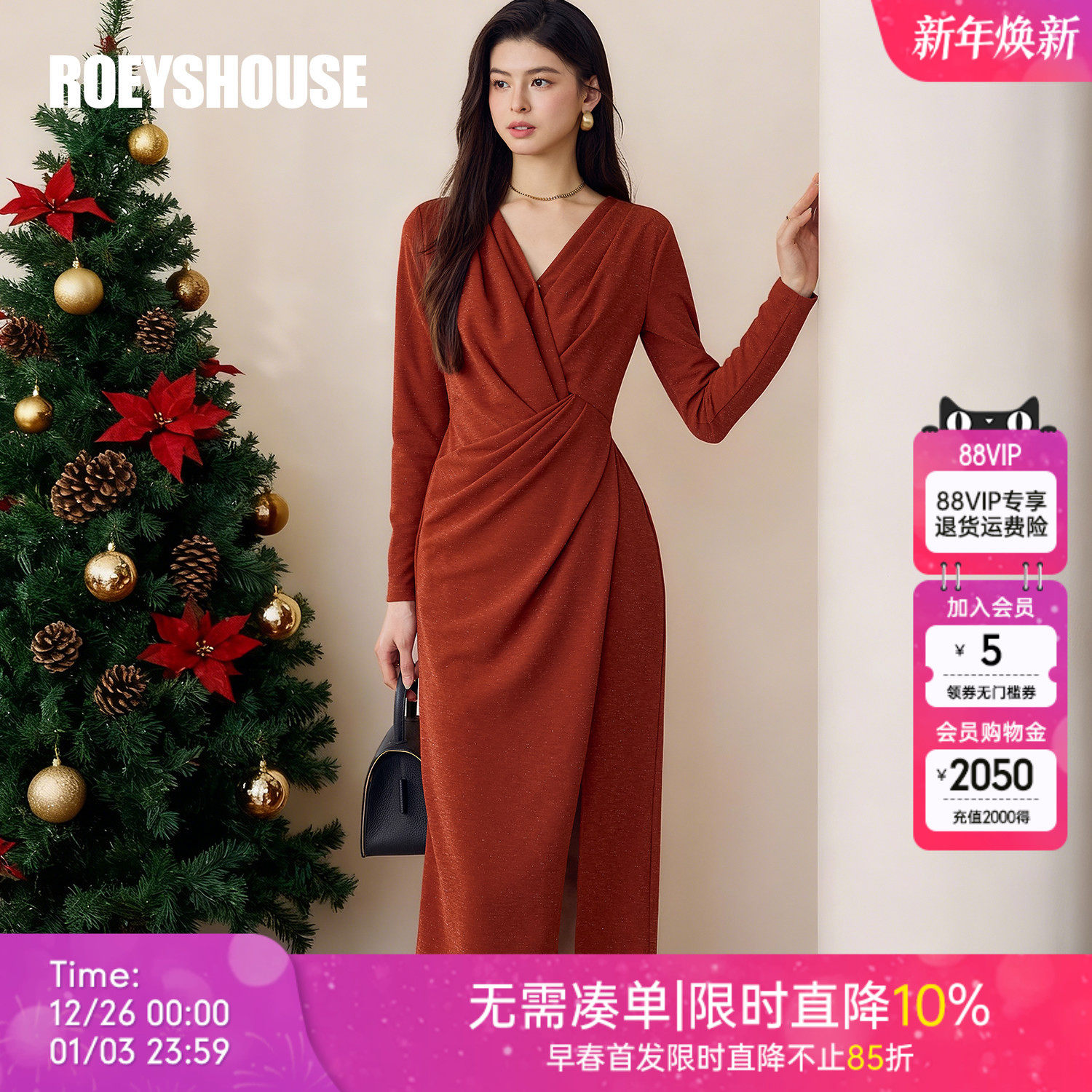 圣诞专供款|罗衣亮丝红色长袖连衣裙女秋冬修身针织中长裙子13026