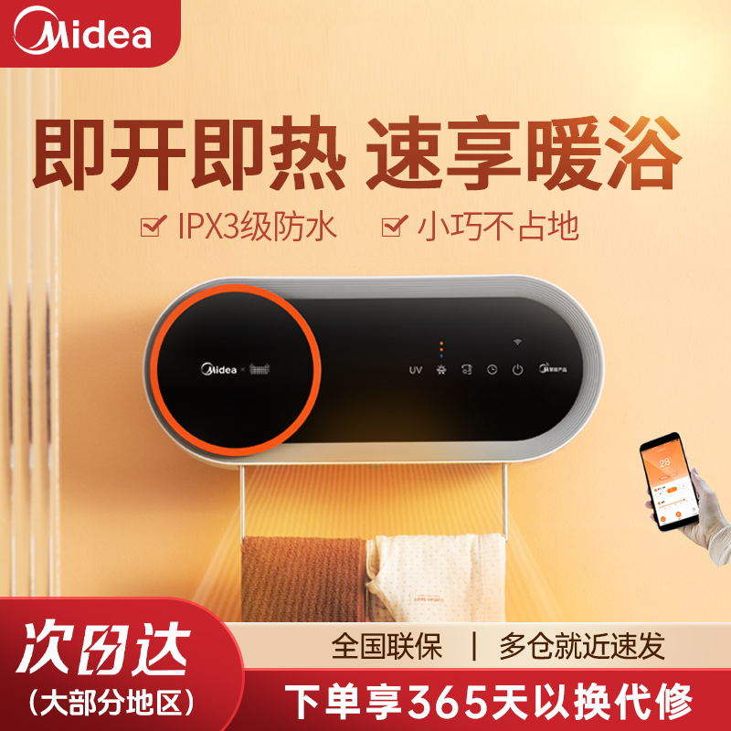 美的取暖器浴室热暖风机家用卫生间洗澡壁挂石墨烯浴霸电暖气神器