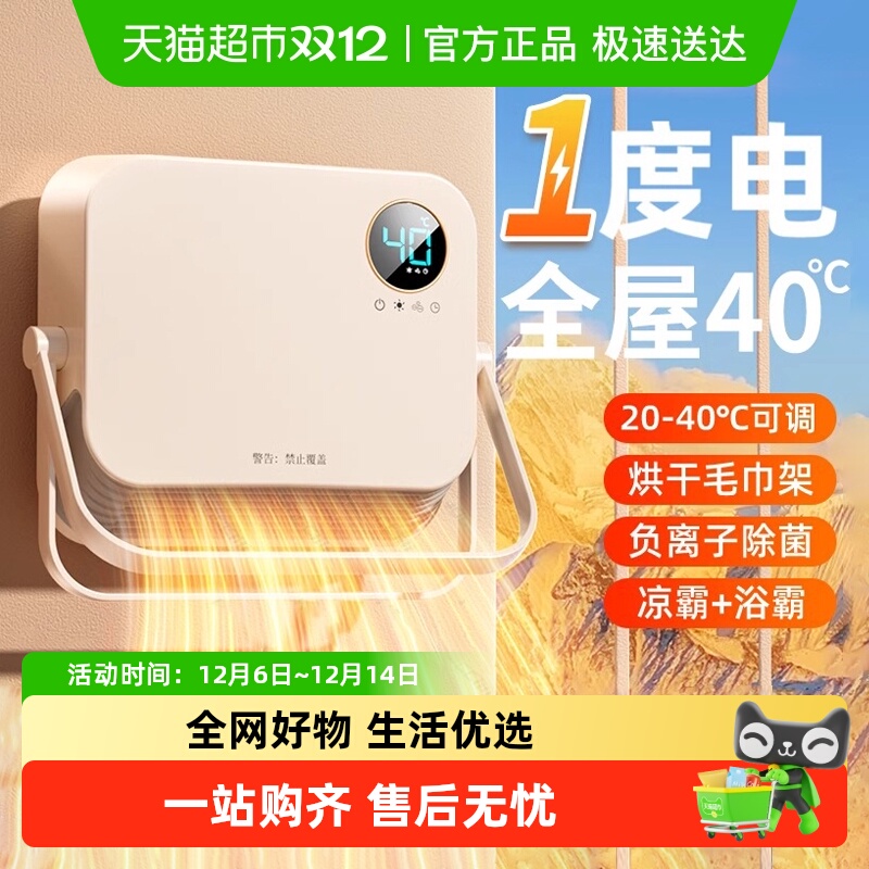 节能浴霸】壁挂取暖器浴室暖风机防水烘干多功能免打孔风暖卫生间