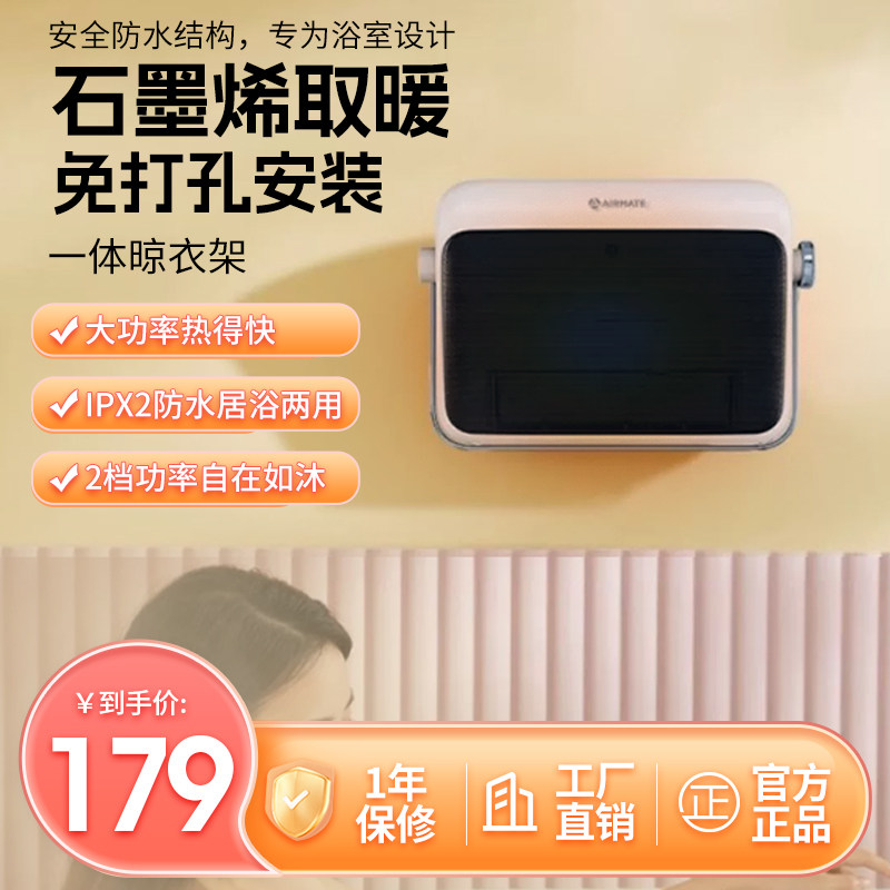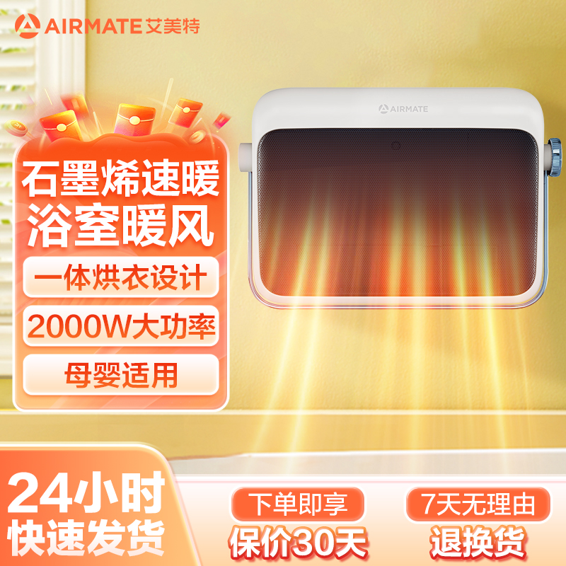 艾美特石墨烯取暖器浴室暖风机家用防水速热神器壁挂式卫生间电暖