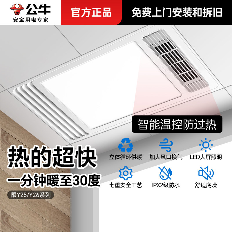 公牛浴霸照明排气扇一体风暖集成吊顶卫生间厕所取暖器浴室暖风机