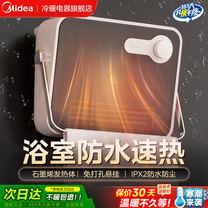 美的新型取暖器浴室暖风机家用壁挂石墨烯电暖风干衣机办公室暖脚