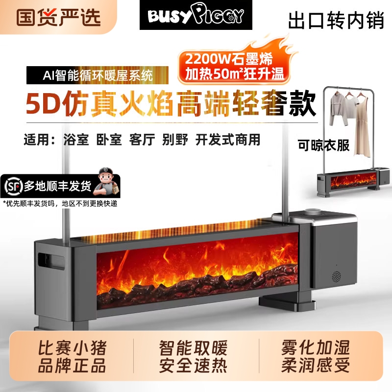 比赛小猪踢脚线取暖器浴室暖风机石墨烯电暖气2025新款全屋大面积
