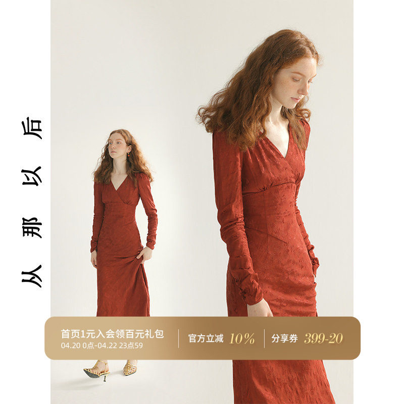 从那以后红色旗袍裙新中式连衣裙高级感新娘礼服长袖订婚敬酒服女