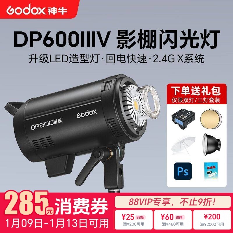 godox神牛DP600W四代闪光灯大功率800W 1000W摄影灯室内静物人像广告静物拍摄三灯套装影室闪光灯专业影棚灯