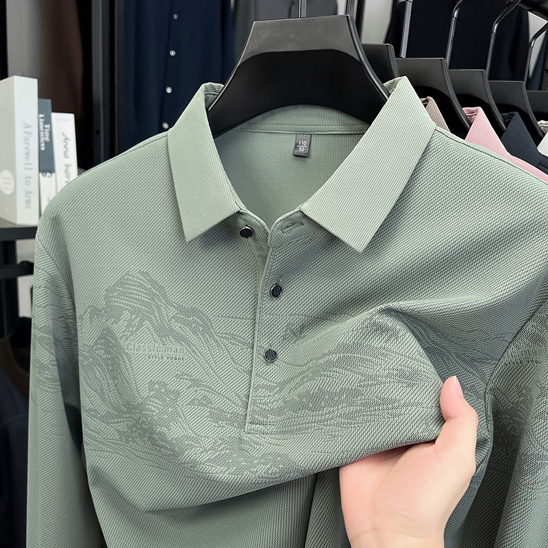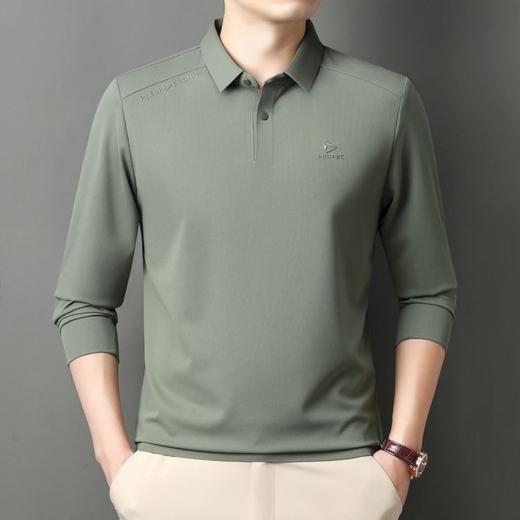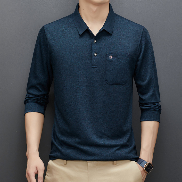 - 中老年翻领长袖t恤男纯棉