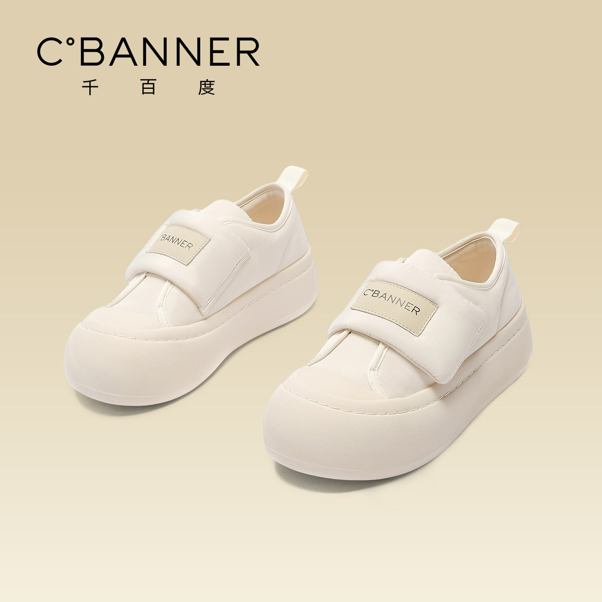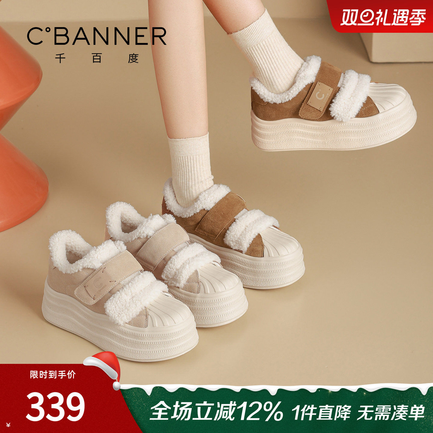千百度厚底加绒板鞋女冬季2025新款魔术贴休闲鞋百搭毛毛棉鞋外穿