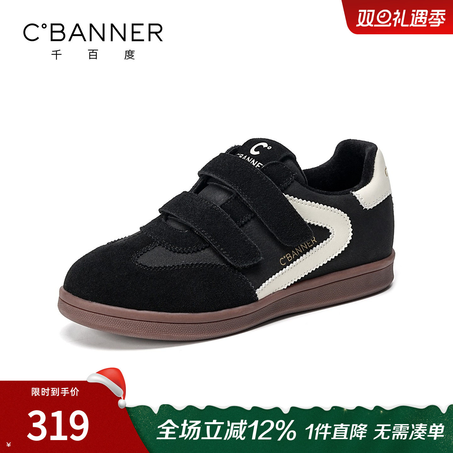 千百度加绒德训鞋女冬季2025新款魔术贴小白鞋百搭休闲板鞋女棉鞋
