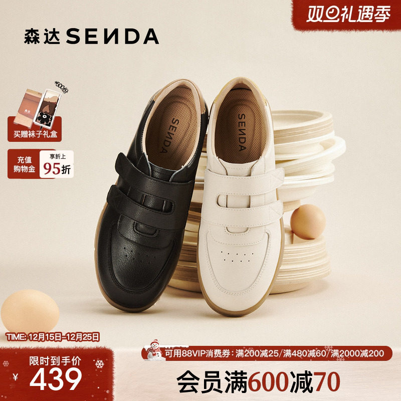 森达百搭小白鞋女款26年新款板鞋商场同款平底魔术贴运动鞋4BKC1