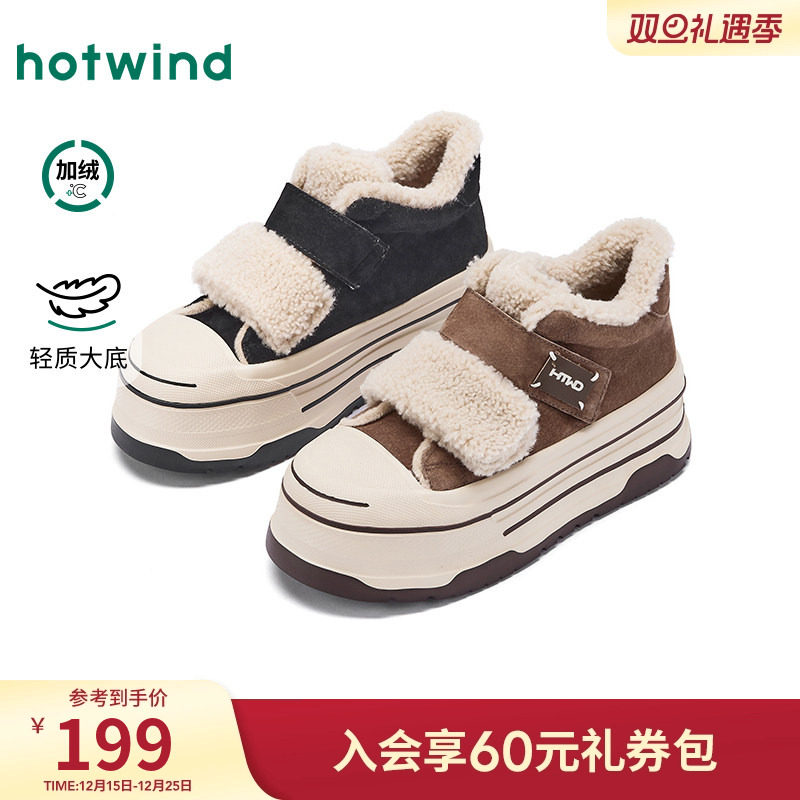 热风厚底休闲鞋女款2025年冬季新款魔术贴增高毛毛鞋加绒板鞋女鞋