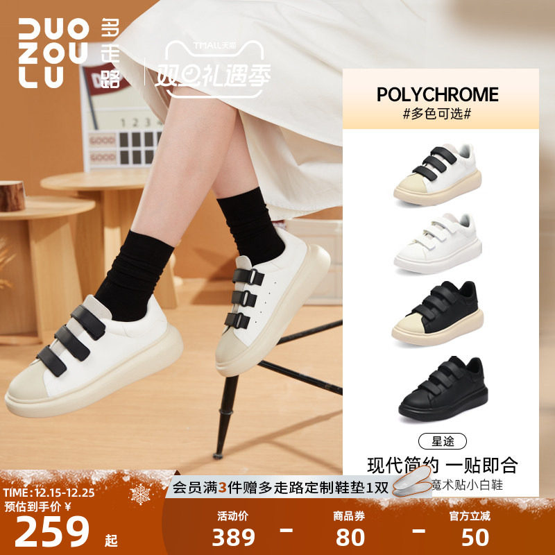 多走路星途魔术贴小白鞋女新款鞋时尚百搭休闲运动鞋松糕厚底板鞋