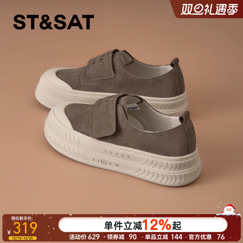 星期六丑萌加绒厚底休闲板鞋女鞋2025秋冬新款魔术贴面包鞋休闲鞋