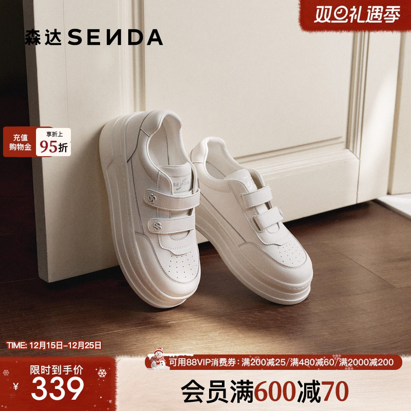 森达厚底小白鞋女26春季新款增高魔术贴休闲板鞋巨好看百搭款鞋子