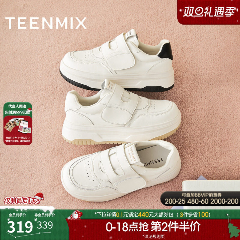 天美意魔术贴厚底增高面包小白鞋运动板鞋女鞋子休闲鞋2025秋新款