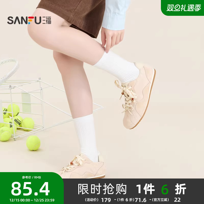 三福板鞋女秋季复古韩系串珠蝴蝶配饰魔术贴德训鞋女鞋845128