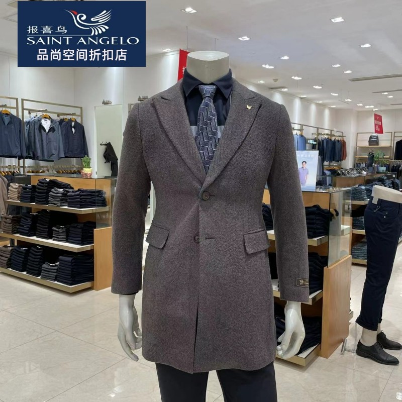 报喜鸟品牌男毛呢大衣商务正装山羊绒戗驳领外套秋季新款专柜正品