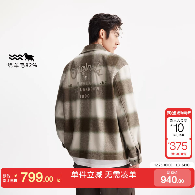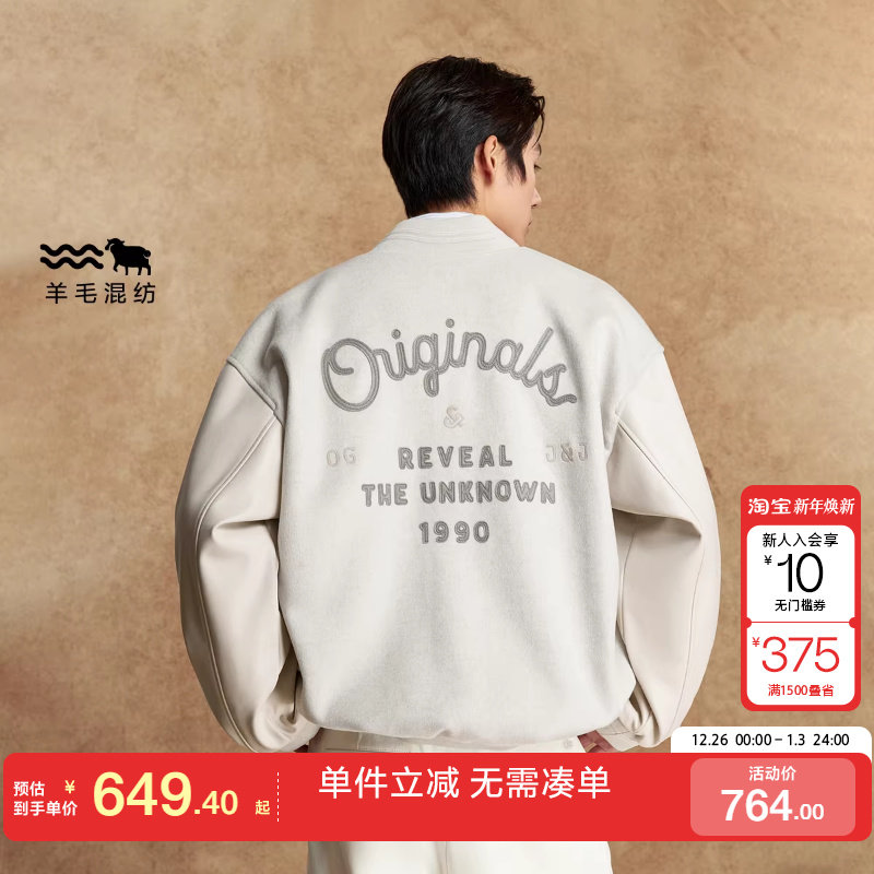 绫致杰克琼斯2025年冬季男毛呢大衣时尚百搭外套贴布刺绣上衣