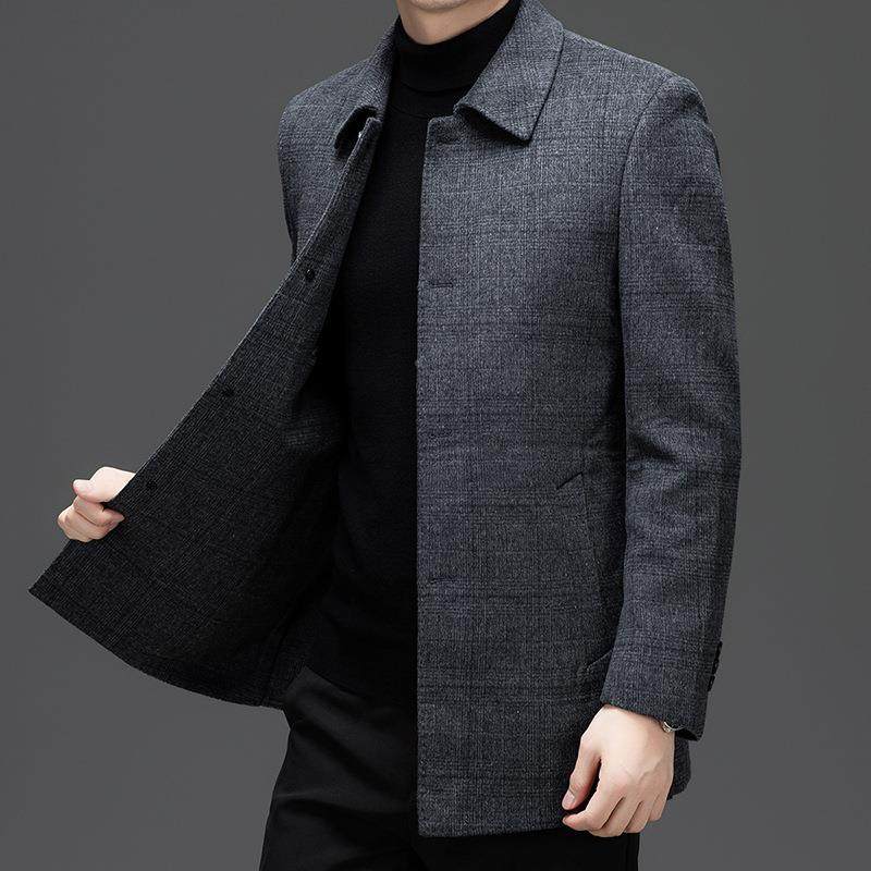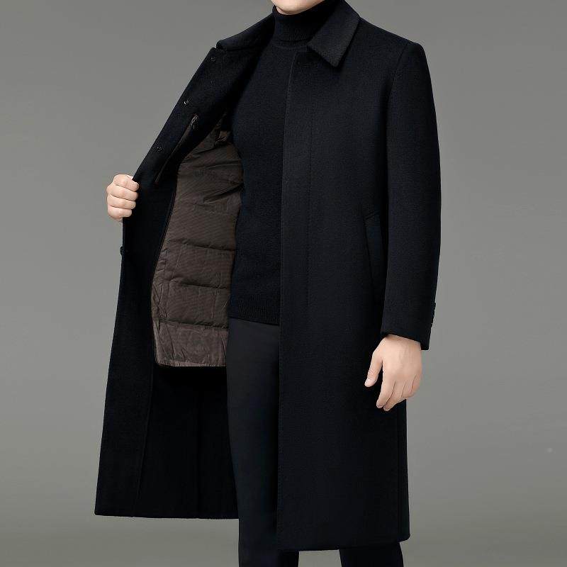 男毛呢大衣冬长款A8520-WL中青双年商务脱卸羽秋绒内胆面呢风式衣