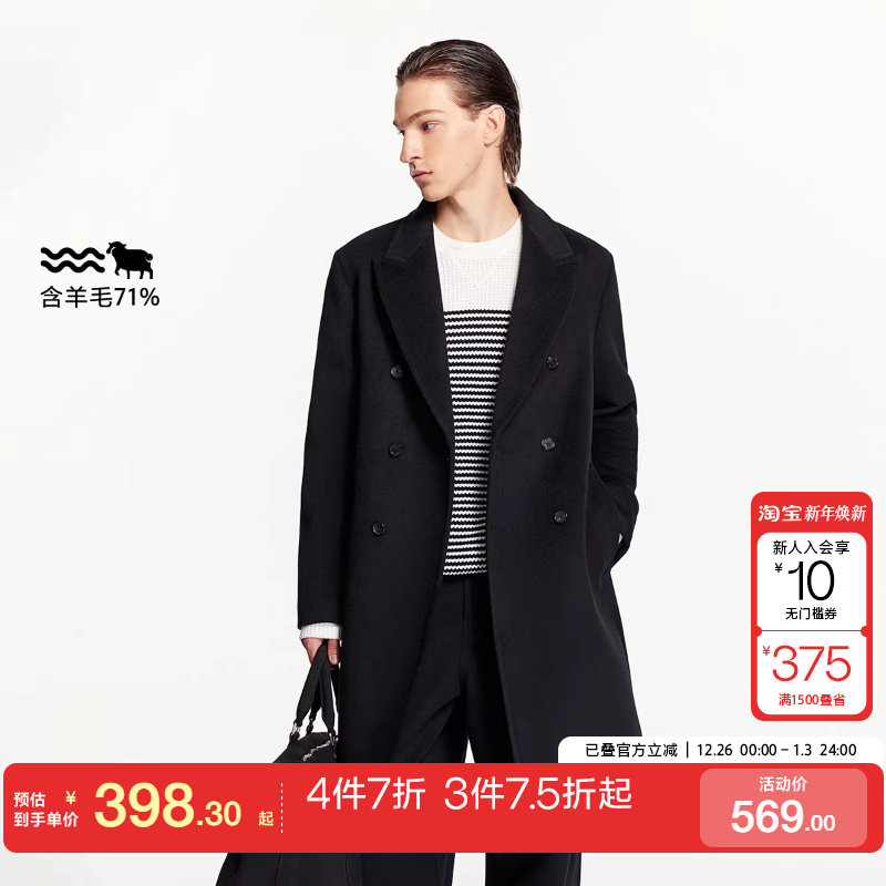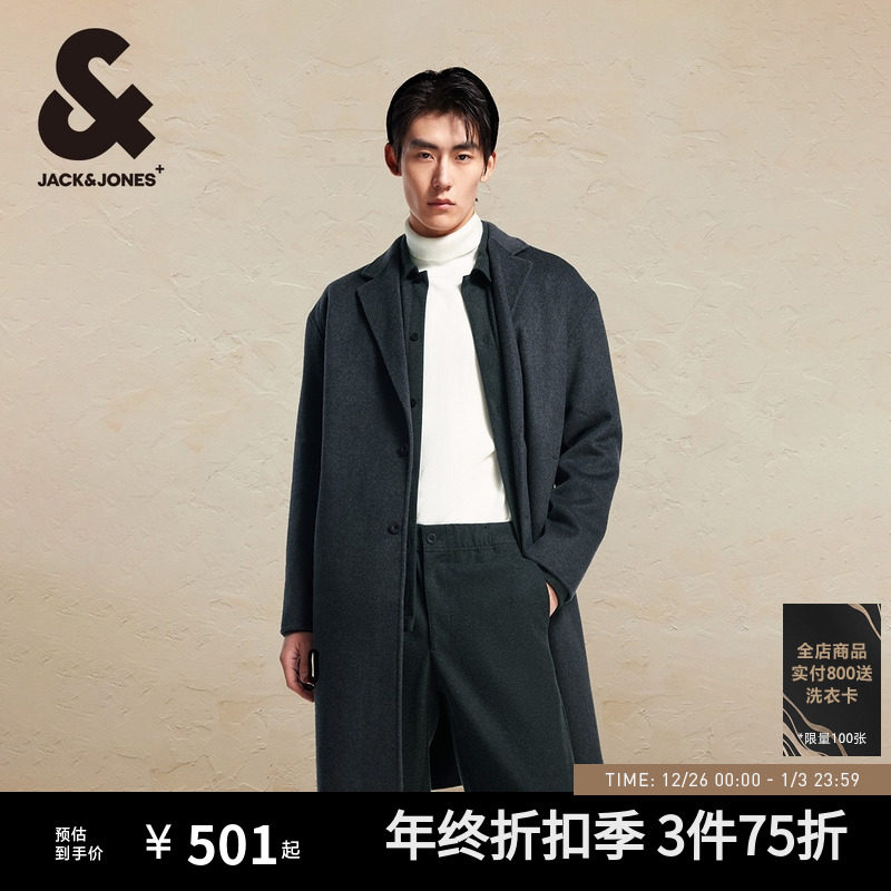 杰克琼斯男装男毛呢大衣男含羊毛新款休闲商务中长夹克上衣款冬冬