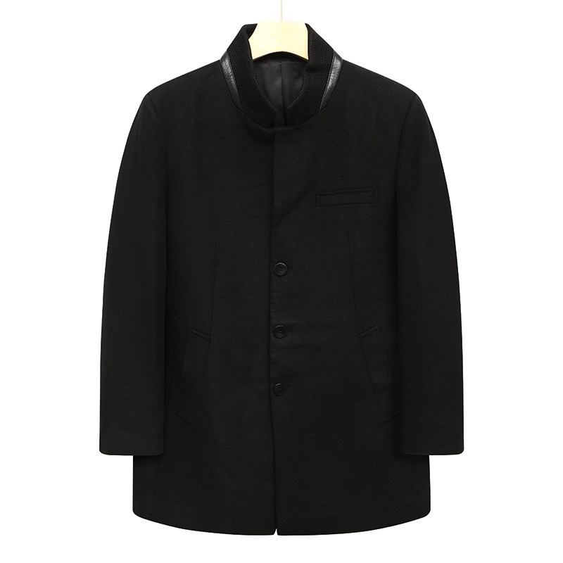 H1139卡秋冬男毛呢大衣 羊毛獭兔毛领直排扣保暖防风外套时尚都市