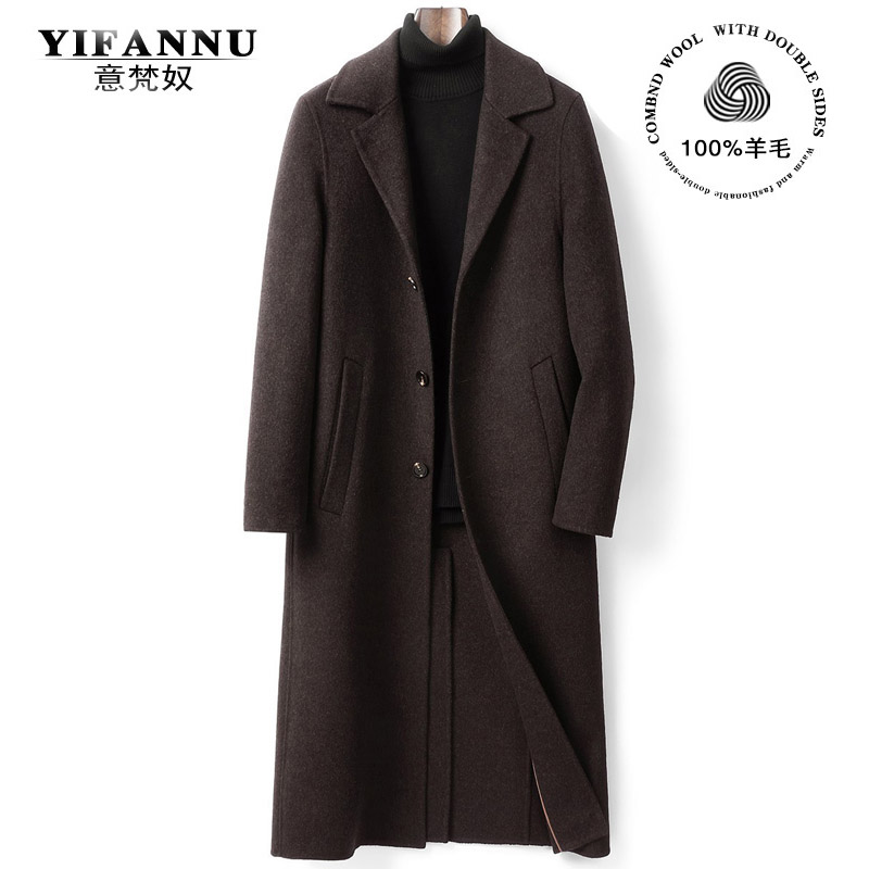 男士羊毛绒风衣毛呢外套休闲超长款过膝双面呢大衣男毛呢大衣冬季