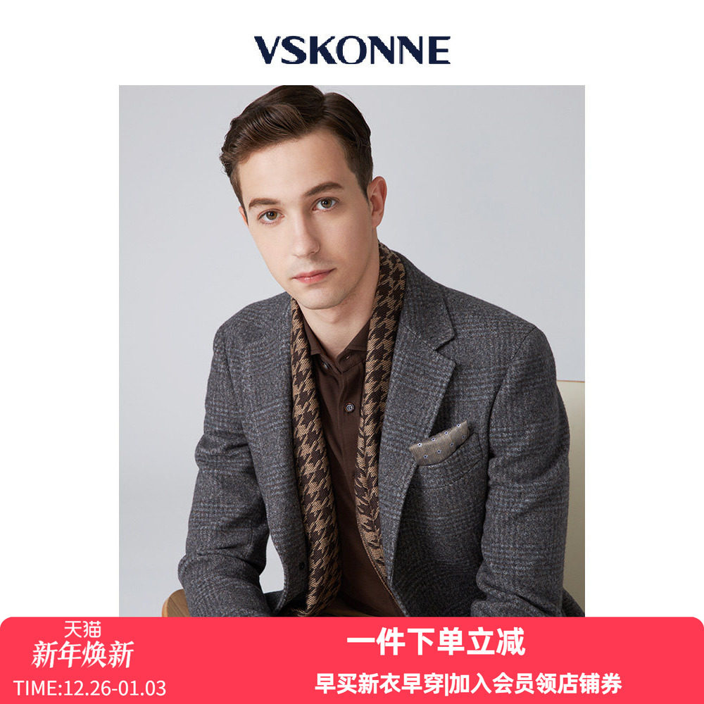 VSKONNE威斯康尼男毛呢大衣100%羊毛中长款翻领修身毛呢大衣外套