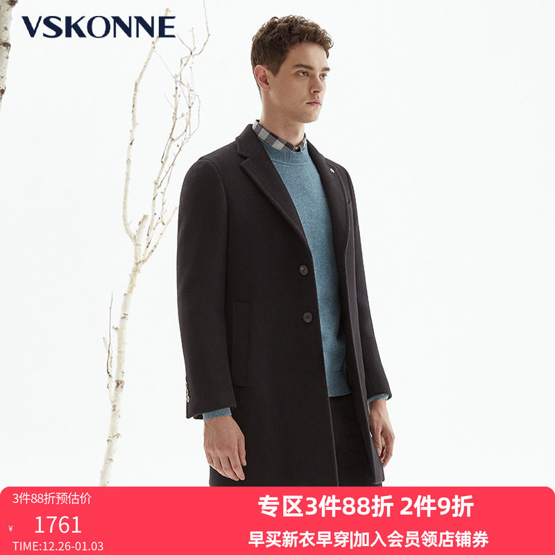 VSKONNE威斯康尼男毛呢大衣商场同款中长100%羊毛修身呢大衣外套