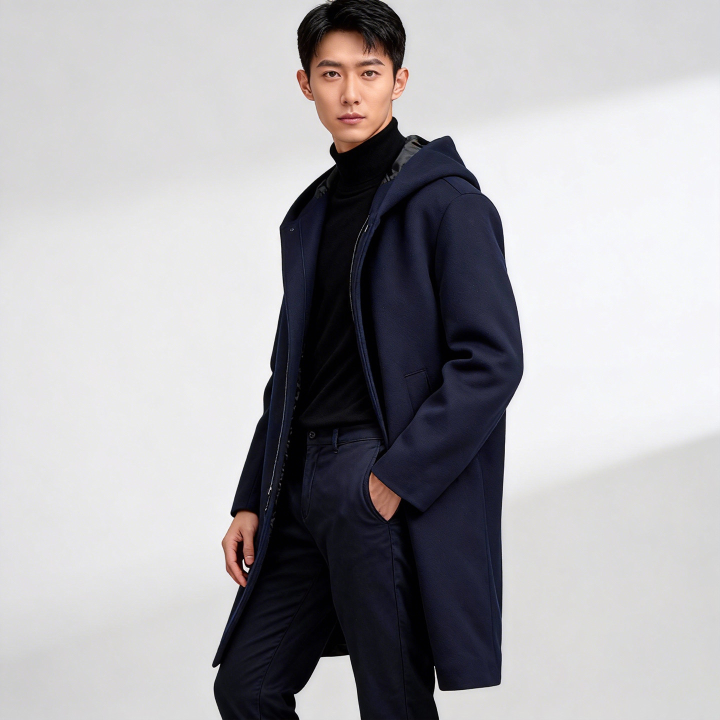 25年冬季新品商务休闲可脱卸白鸭绒双层门襟翻领男毛呢大衣铭盛缘